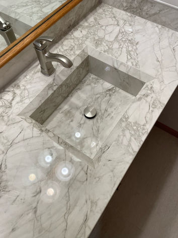 Minimal grout lines - because gauged porcelain is so large (5' x 10') each slab is custom cut which minimizes the need for lots of grout lines.